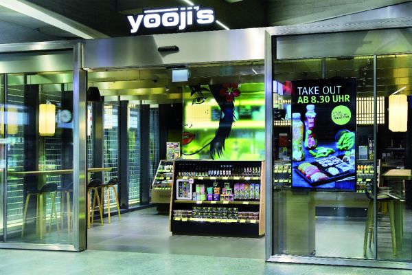 Das Yooji‘s Restaurant befindet sich im modernen Bahnhof Luzern im Untergeschoss. Der Bahnhof bietet Shopping-Erlebnisse an zentraler Lage, ganz in der Nähe vom Vierwaldstättersee. So versorgt das Sushi Deli Pendler, Touristen und Besucher hier vorrangig im Take Out-Verkauf, bietet ihnen jedoch auch einige Sitzplätze.