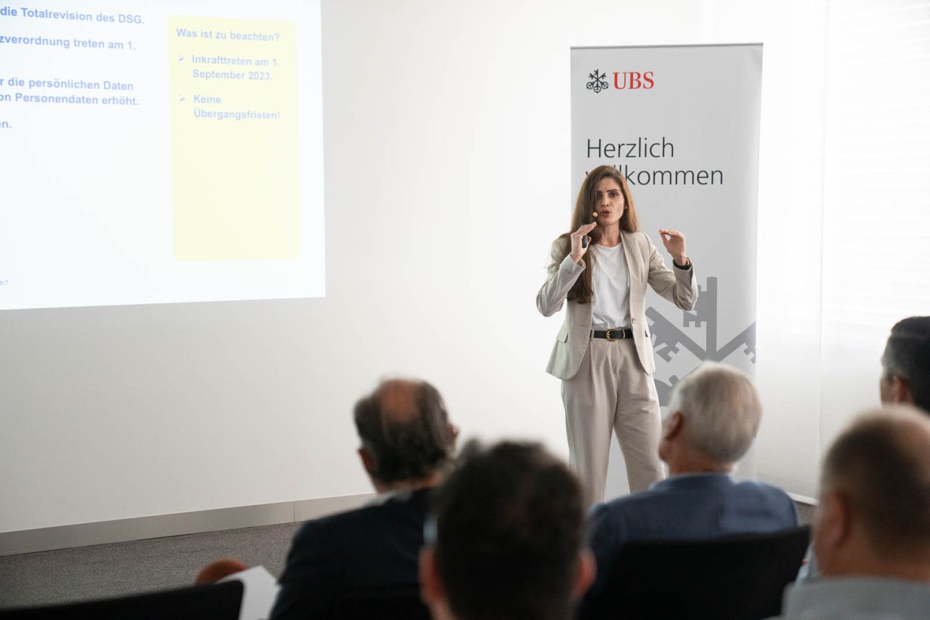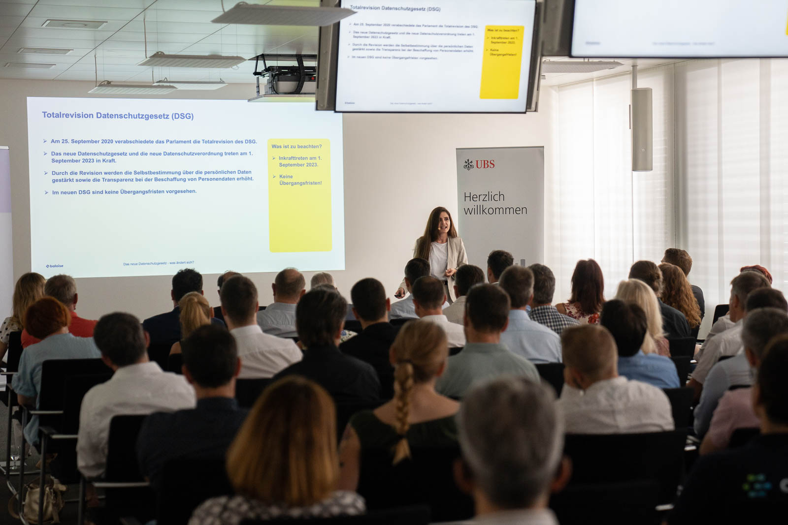 Am Mittwoch, den 21. Juni 2023, fand der sehr gut besuchte City Lunch der City Vereinigung Luzern in den Räumlichkeiten der UBS Geschäftsstelle statt. Die Veranstaltung stand ganz im Zeichen des bevorstehenden Inkrafttretens des revidierten Datenschutzgesetzes am 1. September. Das Thema stiess auf grossen Anklang, entsprechend war die Veranstaltung ausgebucht.