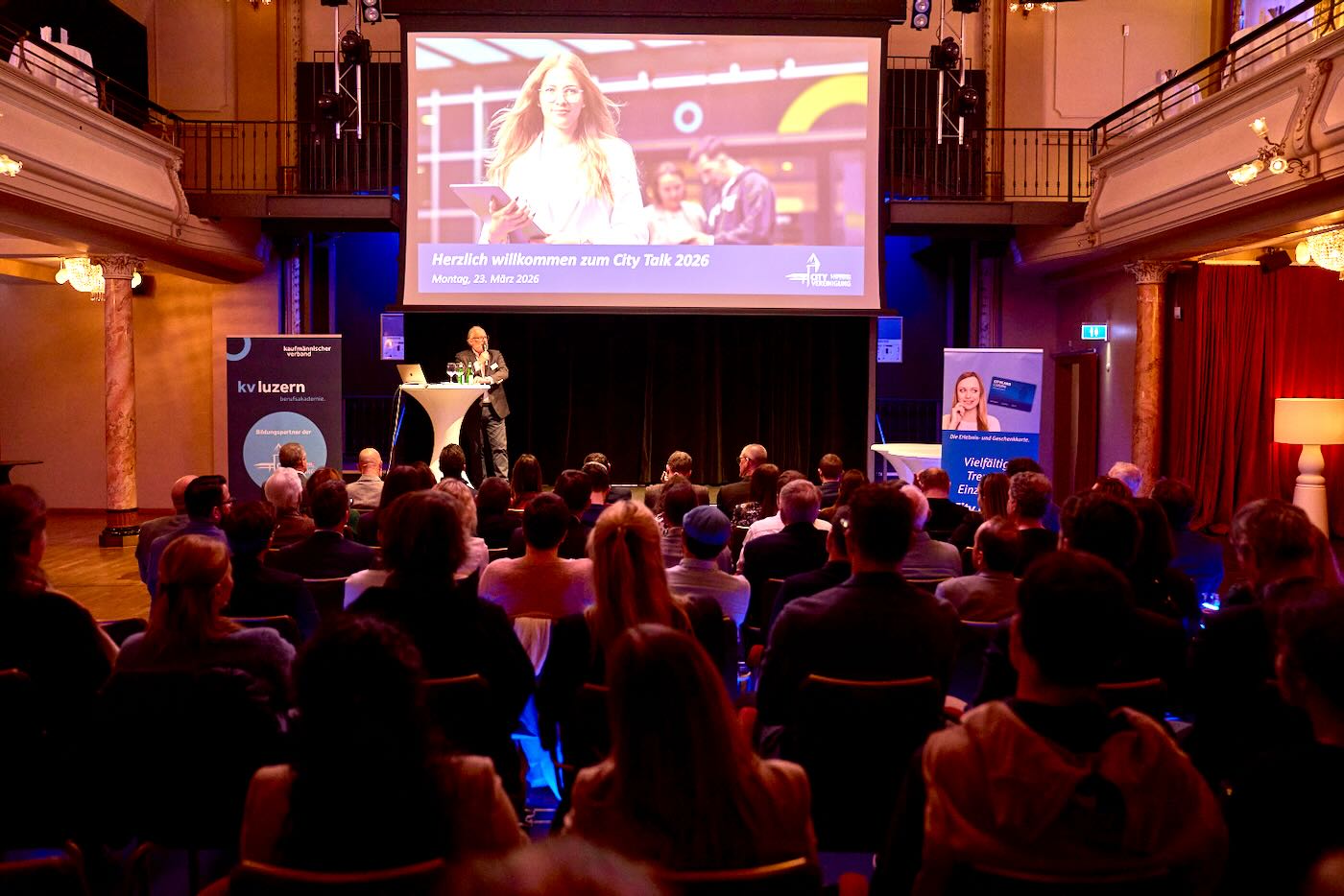 Am Montag, 23. März 2026 fand im Grand Casino Luzern der 16. City Talk der City Vereinigung Luzern statt. Eröffnet wurde der Anlass durch CVL-Präsident Alfred Landolt, der die Gäste begrüsste und in das Thema des Abends einführte.