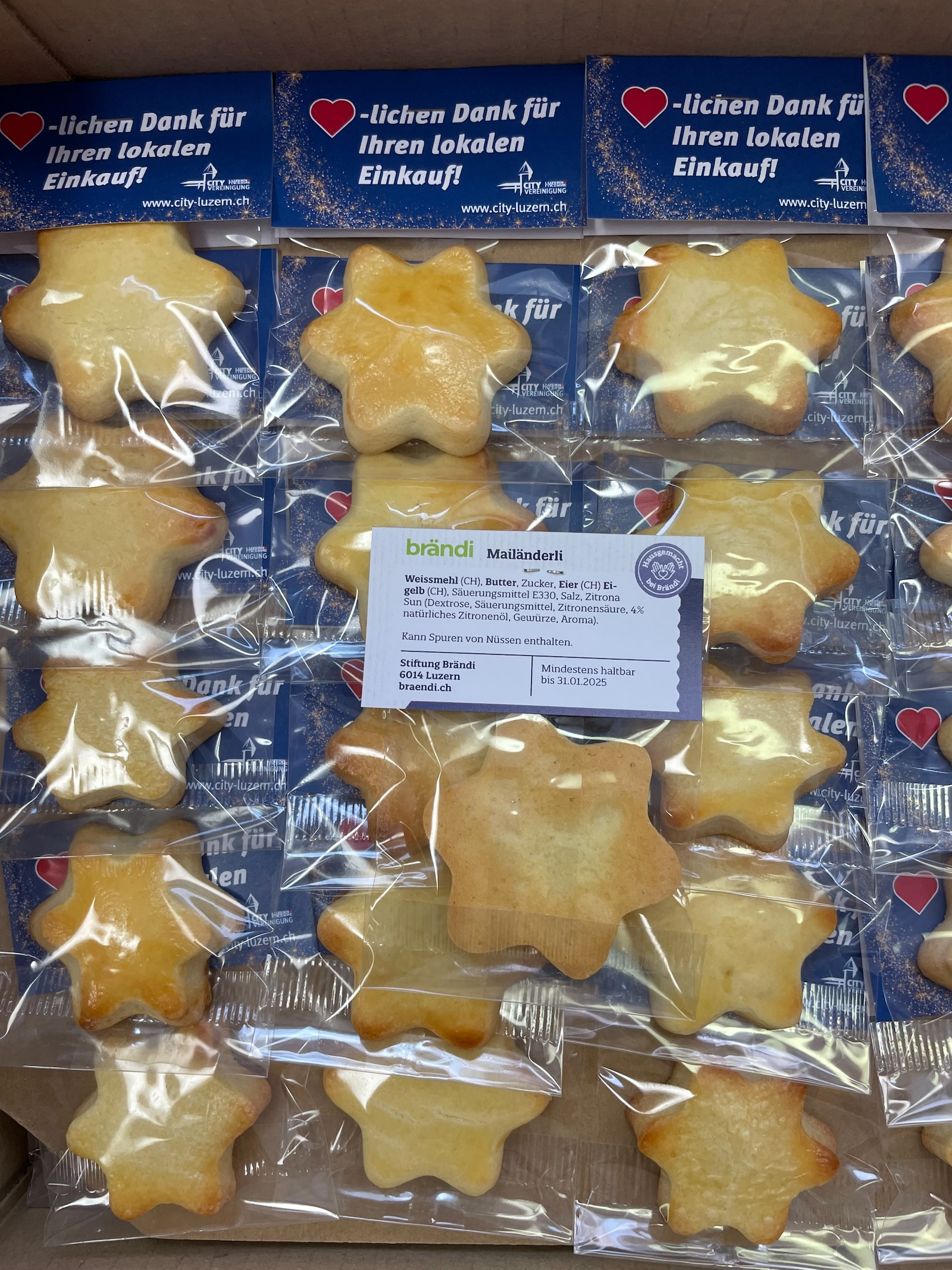 Als Dankeschön für den lokalen Einkauf verteilten wir beim Eiszauber feine Mailänderli, hergestellt von der Stiftung Brändi. Auch das Gewinnspiel war sehr beliebt.