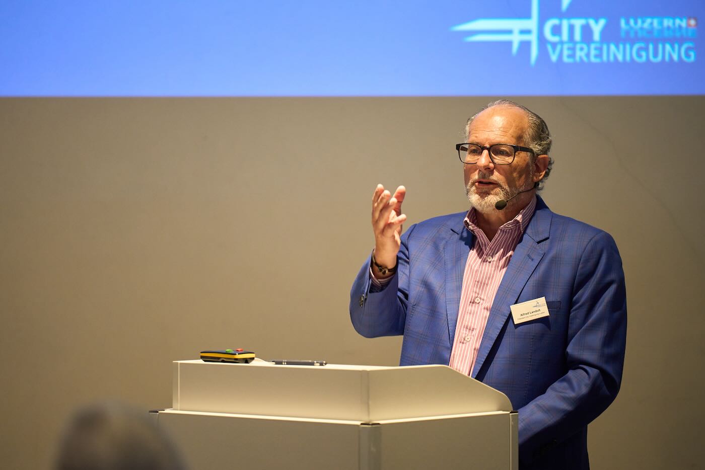 Präsident Alfred Landolt eröffnete den Abend und begrüsste die Anwesenden herzlich. In seiner Ansprache blickte er auf ein engagiertes und erfolgreiches Vereinsjahr zurück, das von zahlreichen Projekten, starken Partnerschaften und wichtigen Impulsen für die Luzerner Innenstadt geprägt war.