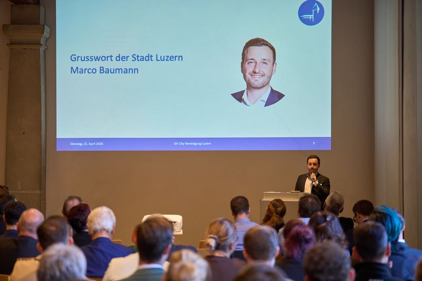 Ein besonderes Grusswort richtete Stadtrat Marco Baumann an die Versammlung. Er überbrachte die besten Wünsche der Stadt Luzern und würdigte die Bedeutung der City Vereinigung als verlässliche Partnerin für eine lebendige, attraktive und wirtschaftlich starke Innenstadt.