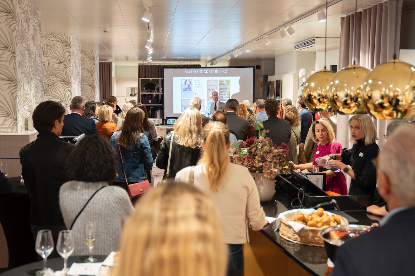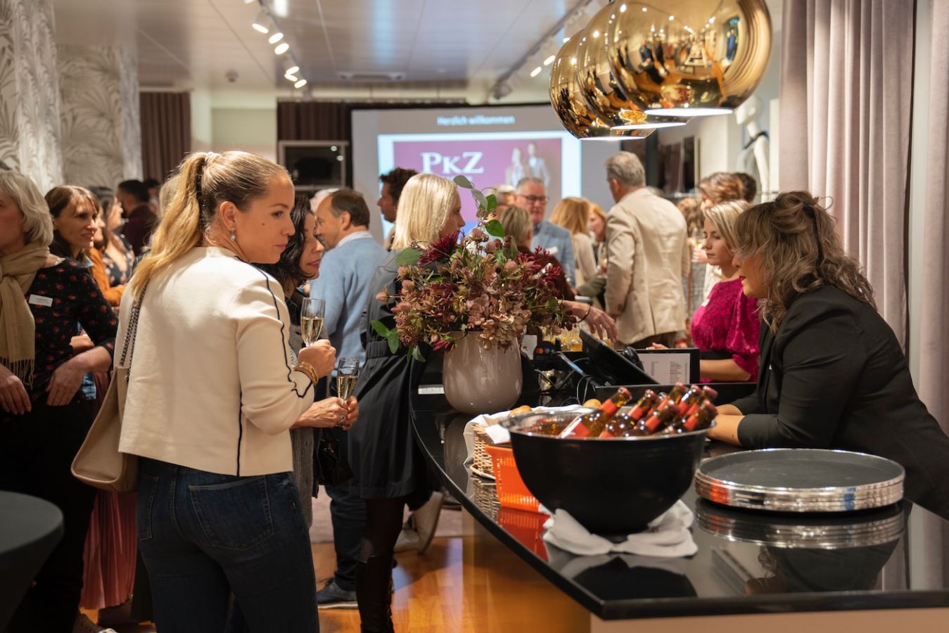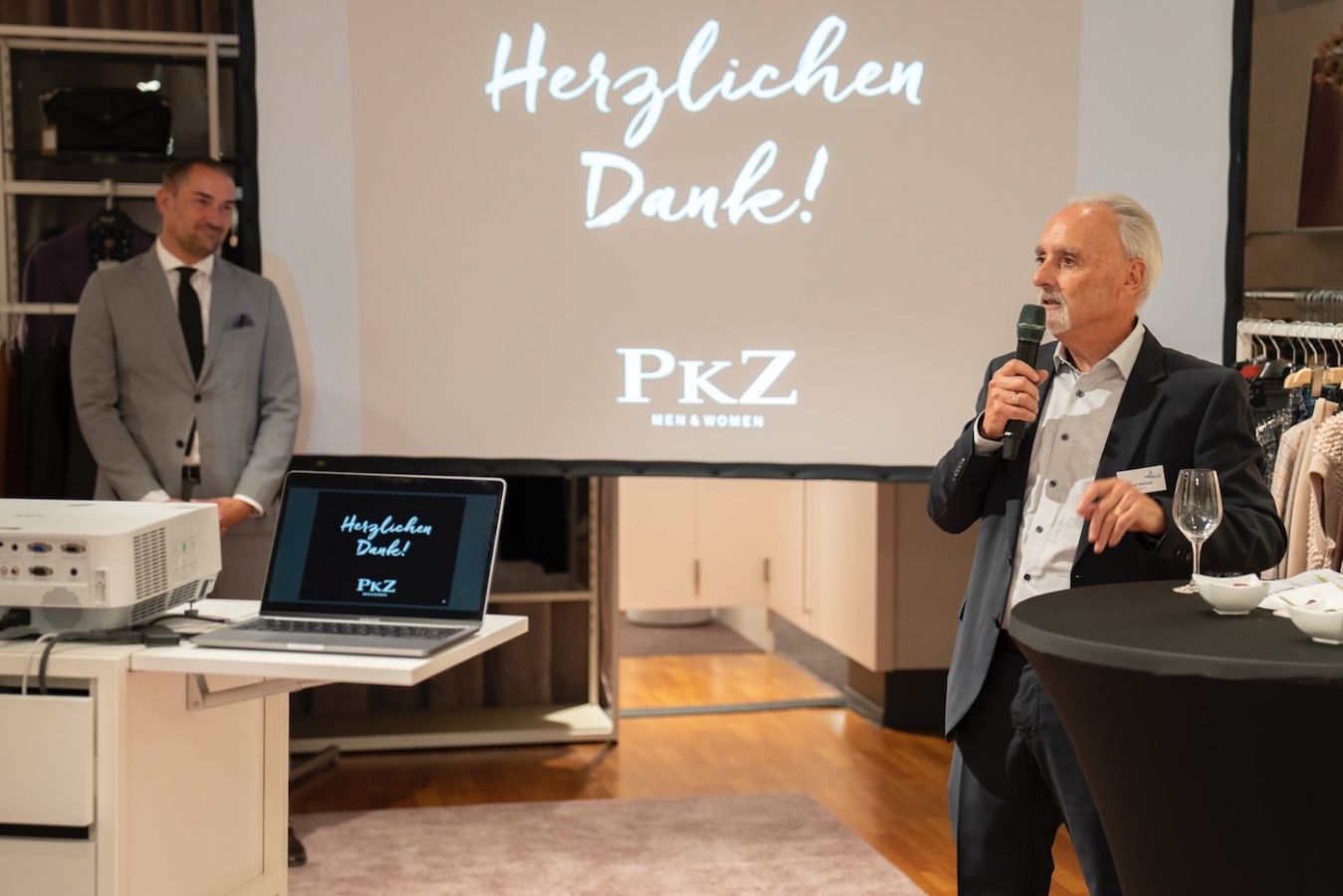 Bereits der Empfang im Parterre vermittle schon sehr viel Warmherzigkeit und führte zu regem Austausch unter den Gästen. Mitglieder, Partner und Freunde versammelten sich in guter Stimmung zum Apéro im zweiten Stock des renommierten Modehauses. Nach einer kurzen Begrüssung durch Präsident Josef Williner und Sarah Schürch, Geschäftsführerin PKZ WOMEN, erhielten die Gäste einen interessanten und kurzweiligen Einblick in die erfolgreiche Entwicklung des Multibrand-Händlers durch Konrad von Niederhäusern, Leiter Verkauf, Personelles und Schulung sowie Mitglied der Unternehmensleitung von PKZ.