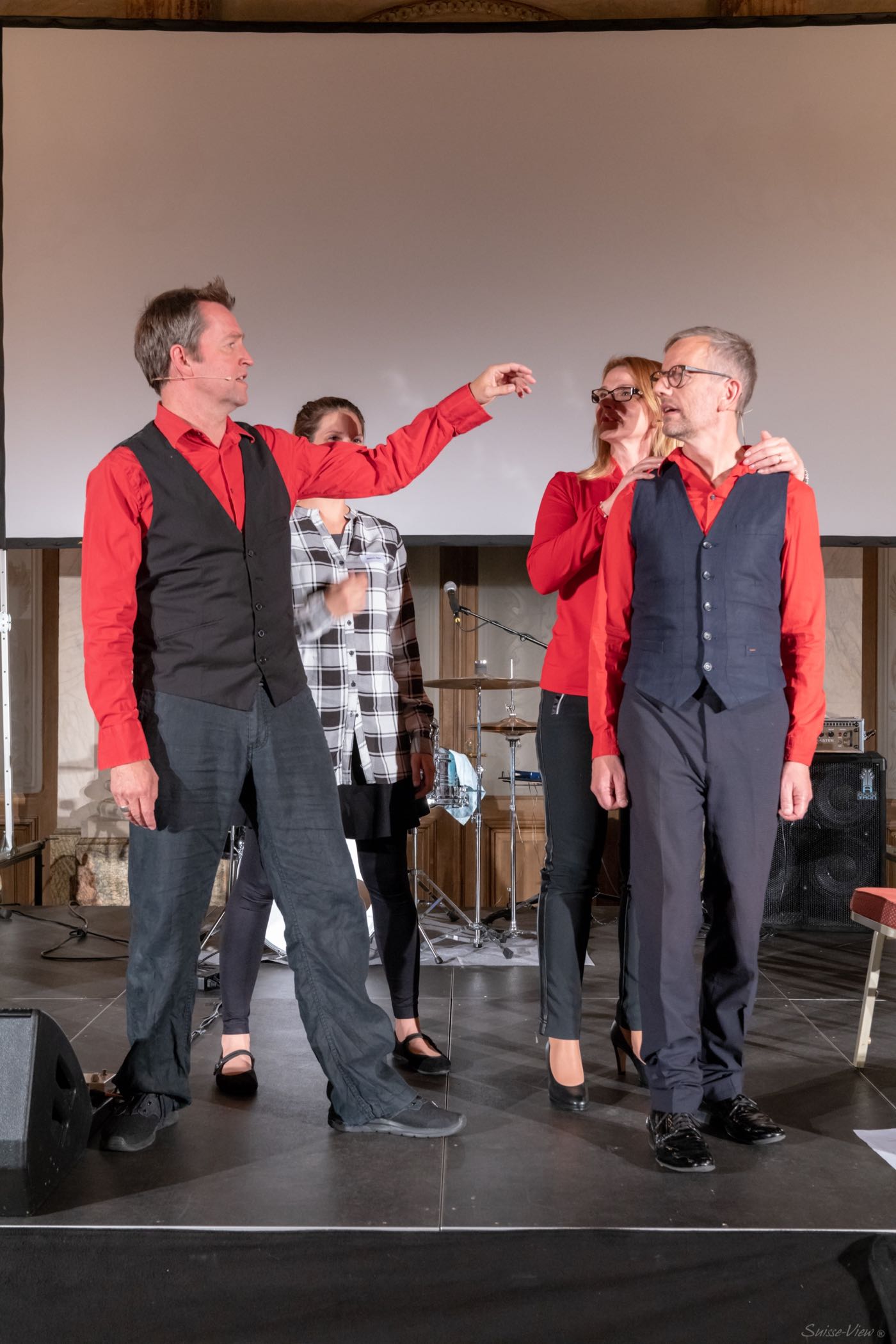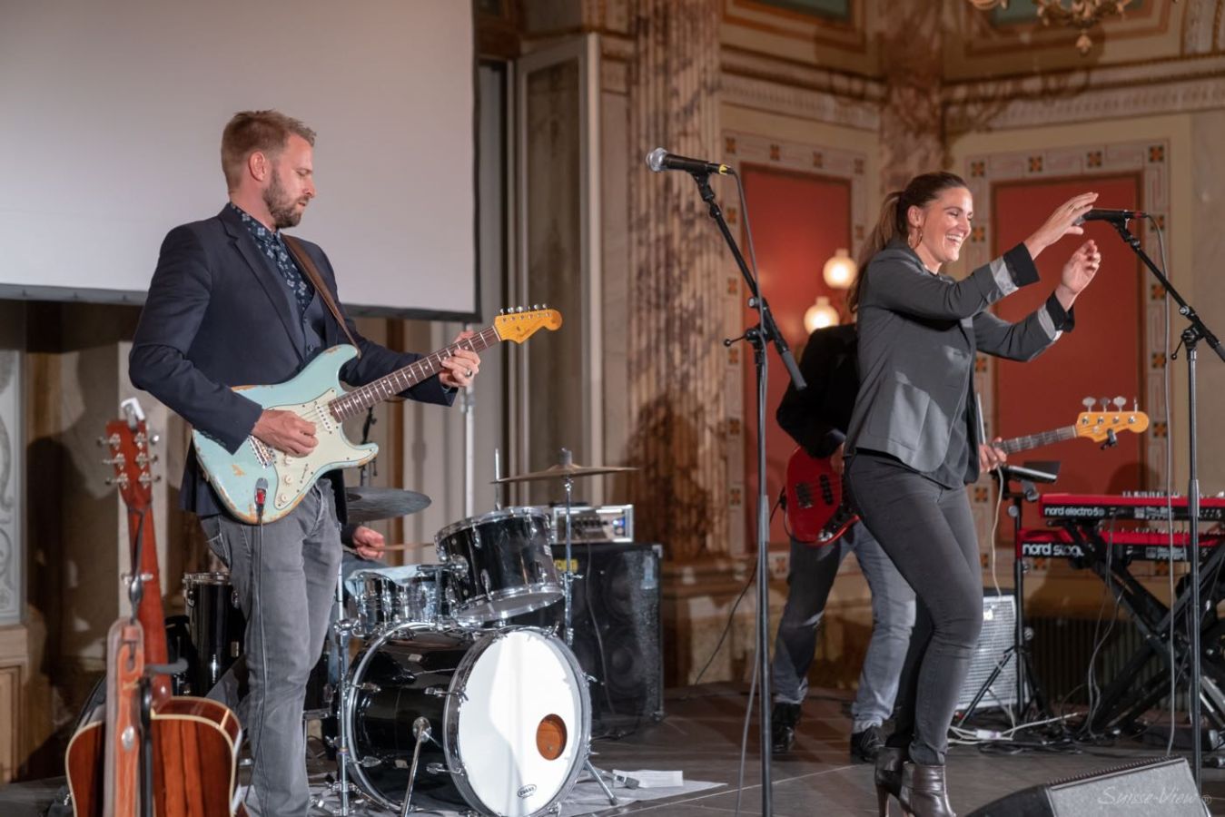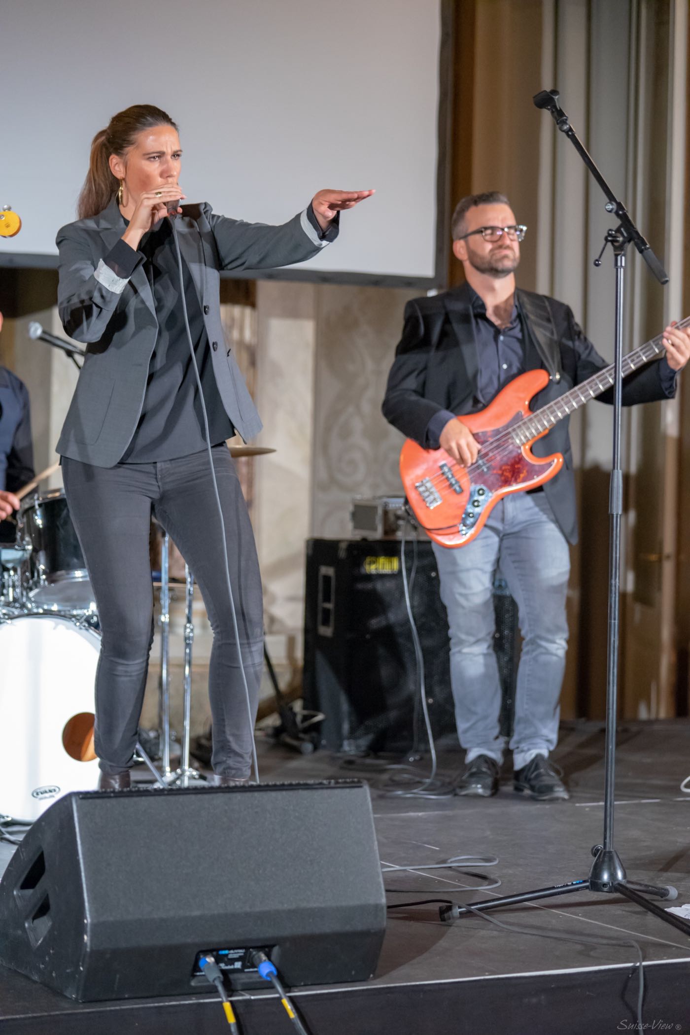 Der zweite Teil des Abends war der Kulinarik und der Unterhaltung gewidmet. Witzig, interaktiv und euphorisch brachte die Truppe von Theatersport «Improphil» den Saal zum Lachen und animierte die Gäste zum Mitmachen. Der krönende und fetzige Schluss setzte Estella Benedetti & Band. Mit stimmgewaltigem Charisma begeisterte die Sängerin die Anwesenden mit Blues-Rock vom Feinsten.