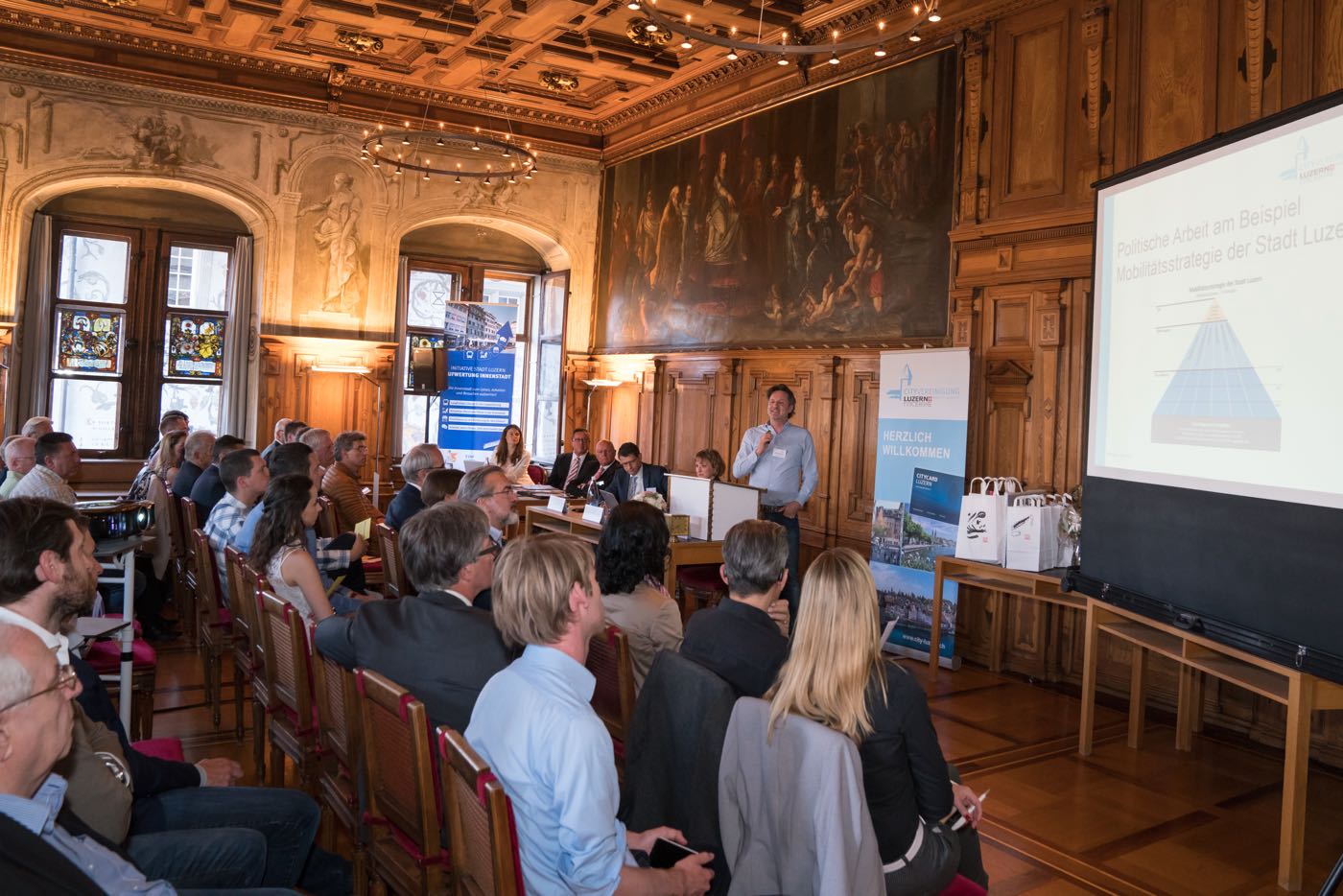 Franz Stalder eröffnete am Montag 22. Mai 2017 die 48. Generalversammlung der City Vereinigung Luzern vor über 90 anwesenden Mitgliedern und Gästen im Rathaus Luzern. Die City Vereinigung Luzern kann insgesamt auf ein erfolgreiches Jahr zurückblicken. Der Präsident wies auf die zahlreichen Kommissionen hin bei denen die City Vereinigung Luzern vertreten ist und thematisierte auch die bestehenden und künftigen Herausforderungen, welche es zu meistern gilt.