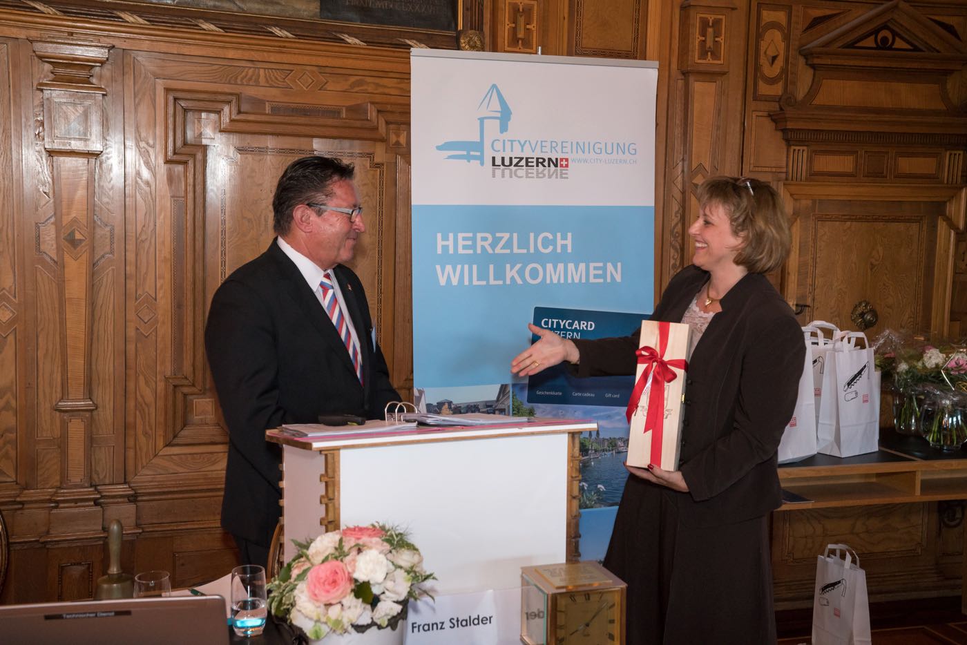 Stadtpräsident Beat Züsli erwähnte die Herausforderungen mit der Eröffnung der Mall of Switzerland und dem Onlinehandel. Er sieht jedoch auch gute Chancen für den Detailhandel mit der einmaligen Kulisse der Stadt Luzern. Er lobte den Vorstand für die geleistete Arbeit und ermutigte die Mitglieder, sich weiter einzusetzen.