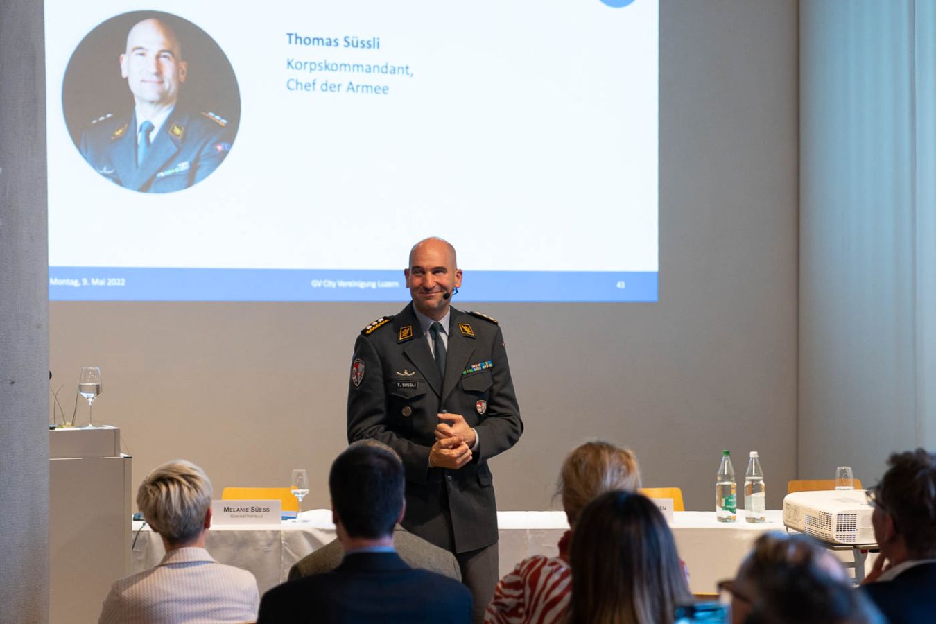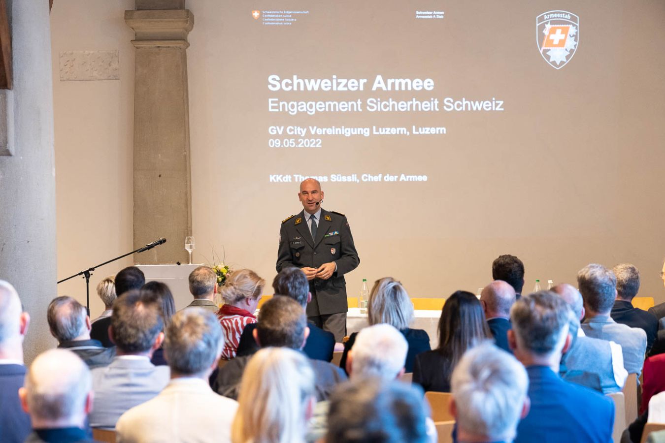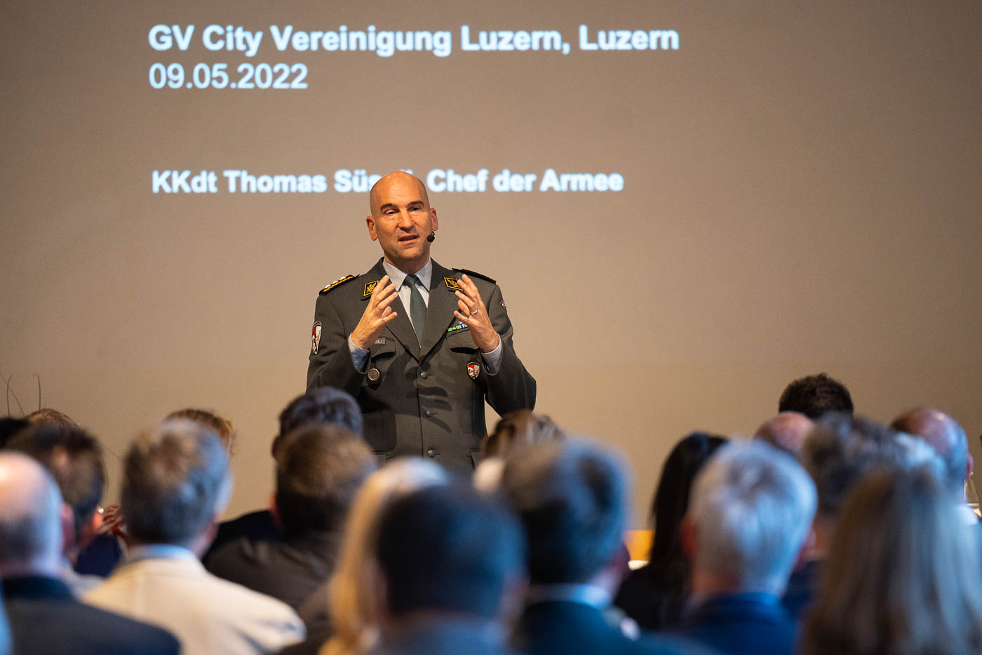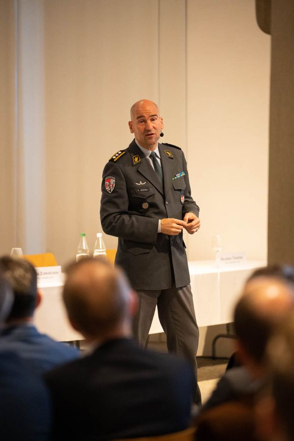 Als Ehrengast referierte Korpskommandant Thomas Süssli, Chef der Armee, über das Engagement Sicherheit Schweiz. Süssli ging aufgrund der Aktualität auf den Krieg in der Ukraine ein und erläuterte diverse Aspekte des Konflikts. Weiter blickte er zurück auf prägende Aspekte, welche zum Erfolg der Schweiz führten und schlug dann die Brücke zur Zukunft. Die Anwesenden hörten eine spannende Erläuterung bezüglich kommender Kräfte, Gefahren und Bedrohungen. Thomas Süssli verdeutlichte die Wichtigkeit der Schweizer Armee als letzte Sicherheitsreserve.