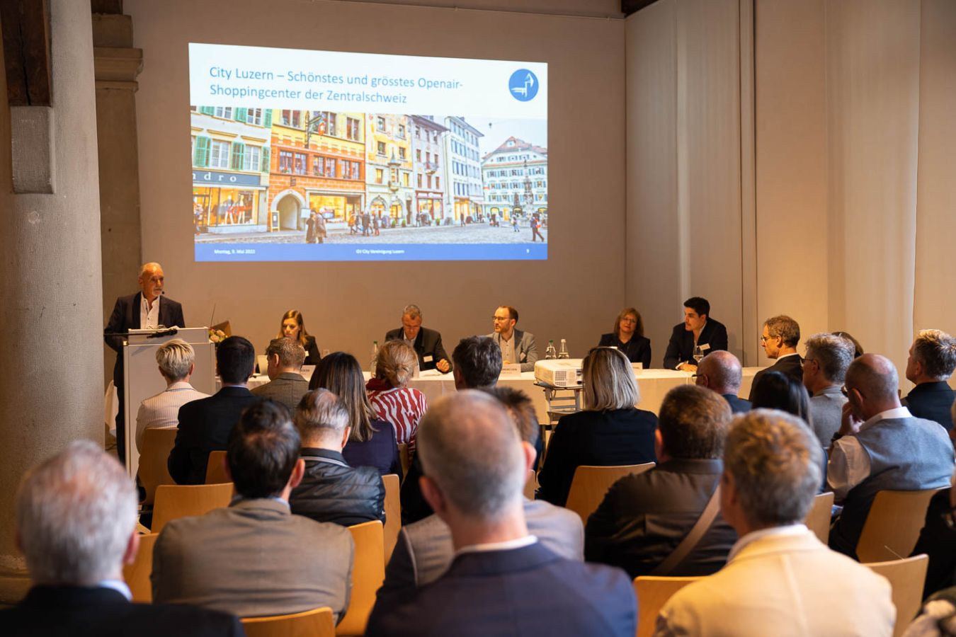 Um 19:10 eröffnete Präsident Josef Williner die 53. Generalversammlung der City Vereinigung Luzern vor rund 90 versammelten Mitgliedern und Gästen in der Kornschütte im Rathaus Luzern.