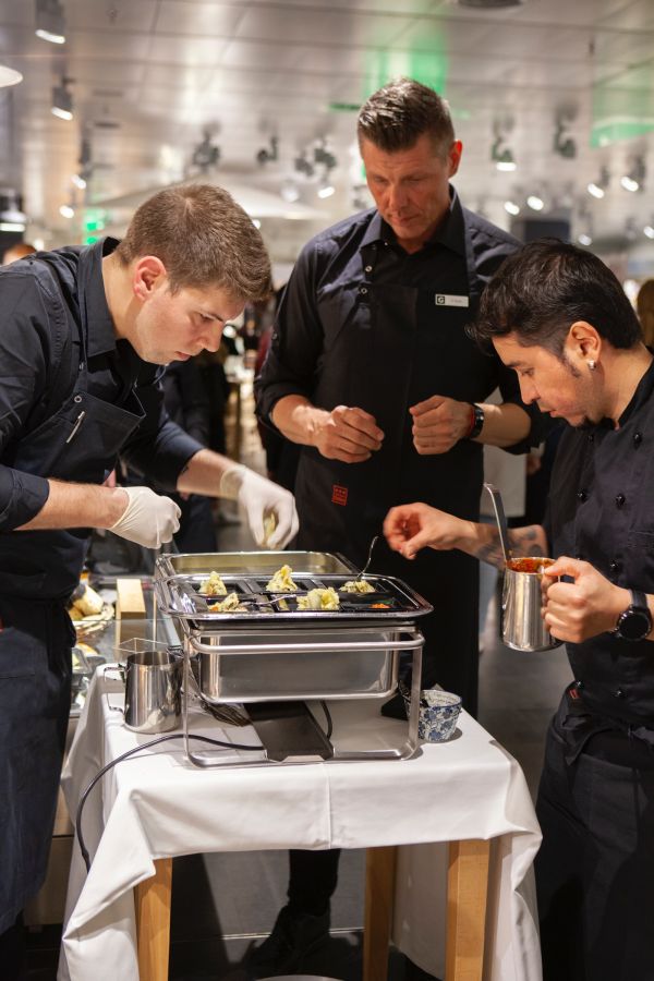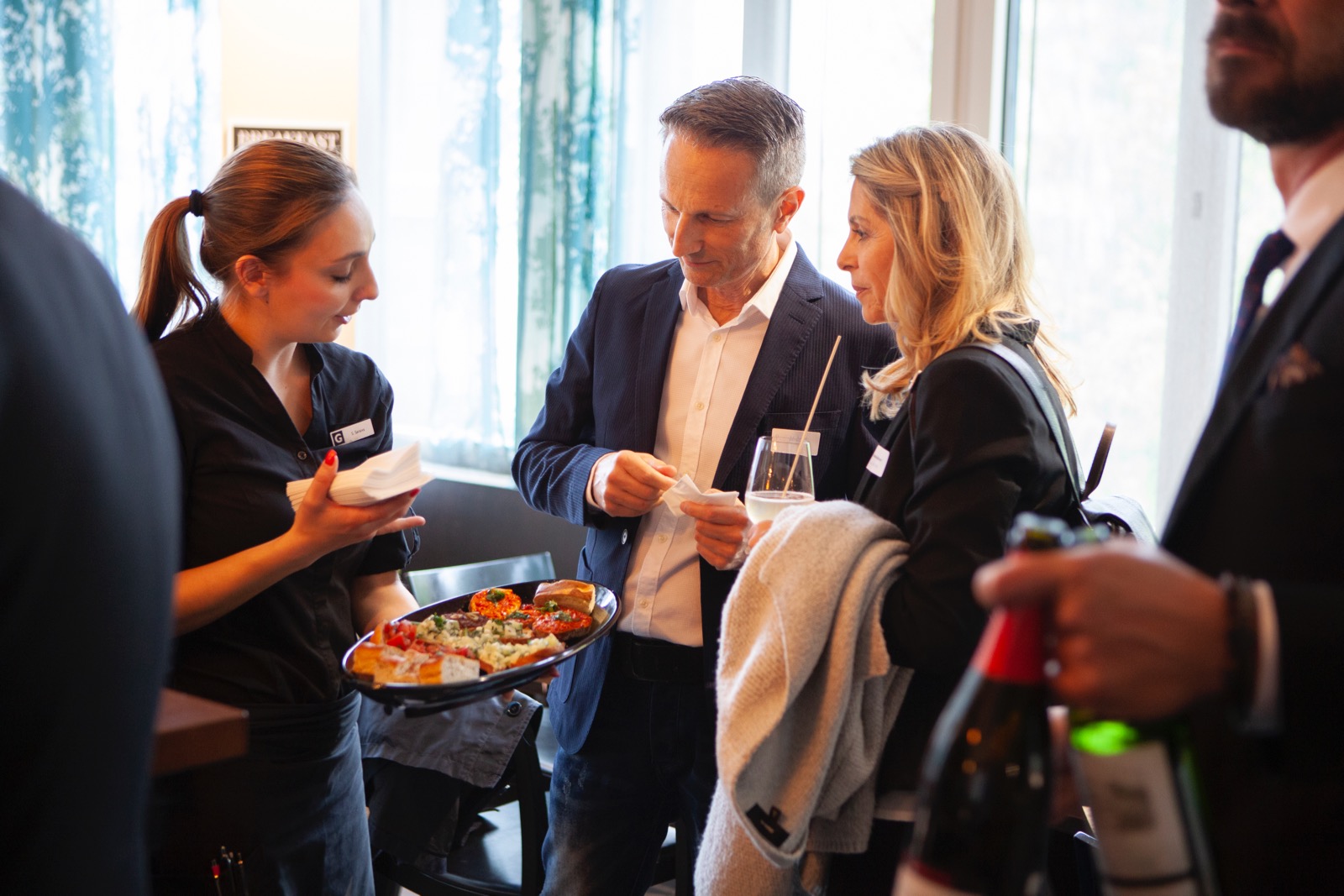 Bereits der Empfang mit rotem Teppich vermittelte ein Hauch von Glamour, weiter ging es dann mit einem Welcome-Drink und feinsten Häppchen im Globus Restaurant. Perfekte Gastgeberqualitäten liessen bereits zum Start gute Laune aufkommen.