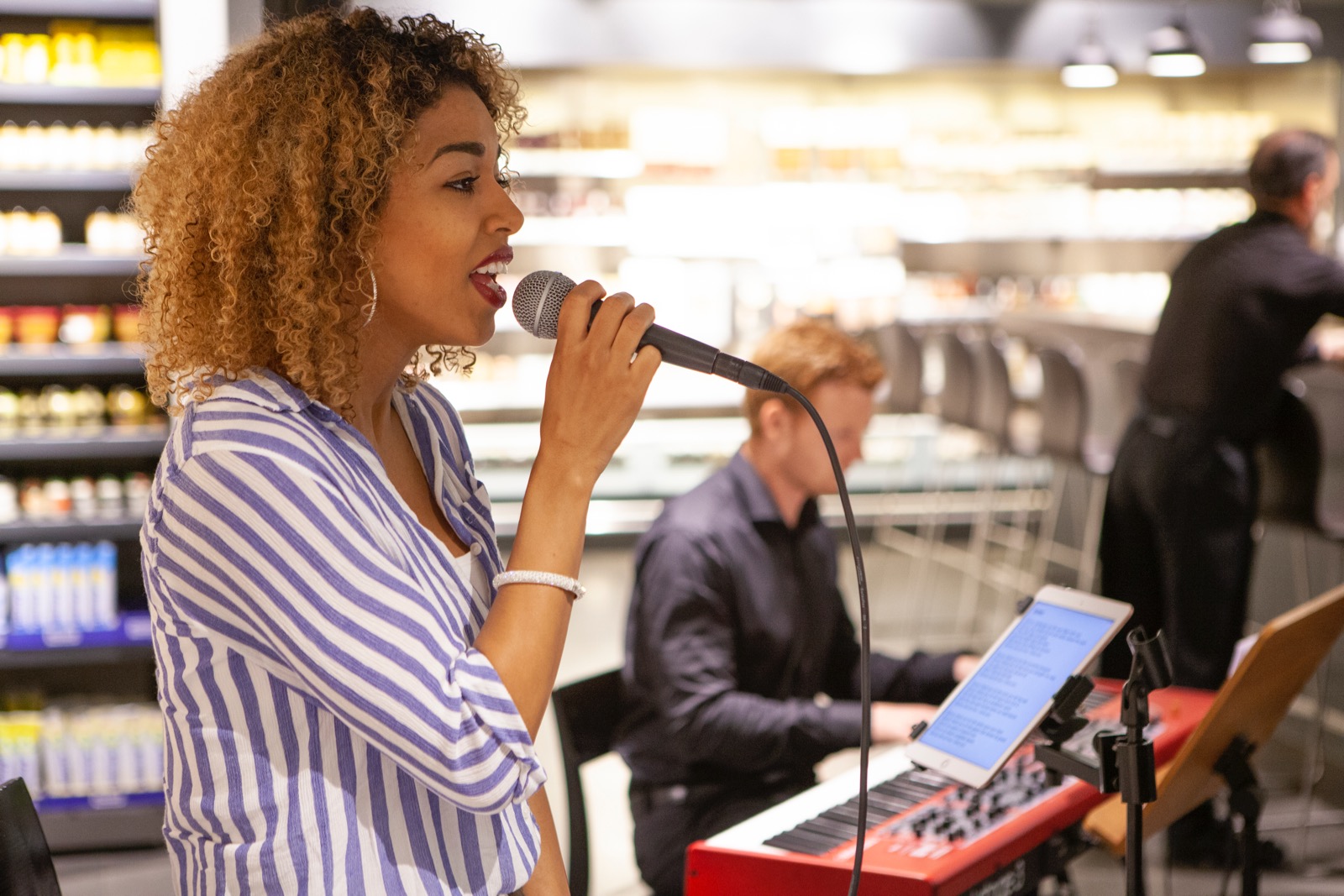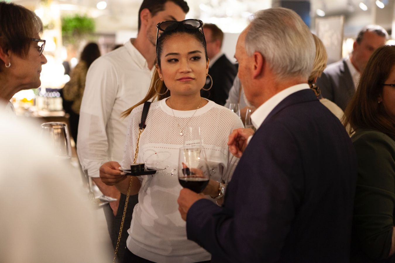 Der zweite Teil des Abends verbrachten die Besucher des City Insights bei bester Stimmung in der ***delicatessa. In schönem Ambiente hatten die Gäste viel Zeit für Networking und genossen dabei musikalische Unterhaltung der Sängerin Jizelle und feinste Köstlichkeiten. Iberico-Schinken, frische Sushi, exklusiver Käse und handgemachte Pasta wurden an einzelnen Posten frisch präsentiert und zubereitet und von ausgesuchten Weinen begleitet. Dazwischen flanierten Models mit den neuesten Sommerkollektionen durch die Lebensmittelregale und verliehen der Veranstaltung einen weiteren Höhepunkt.
