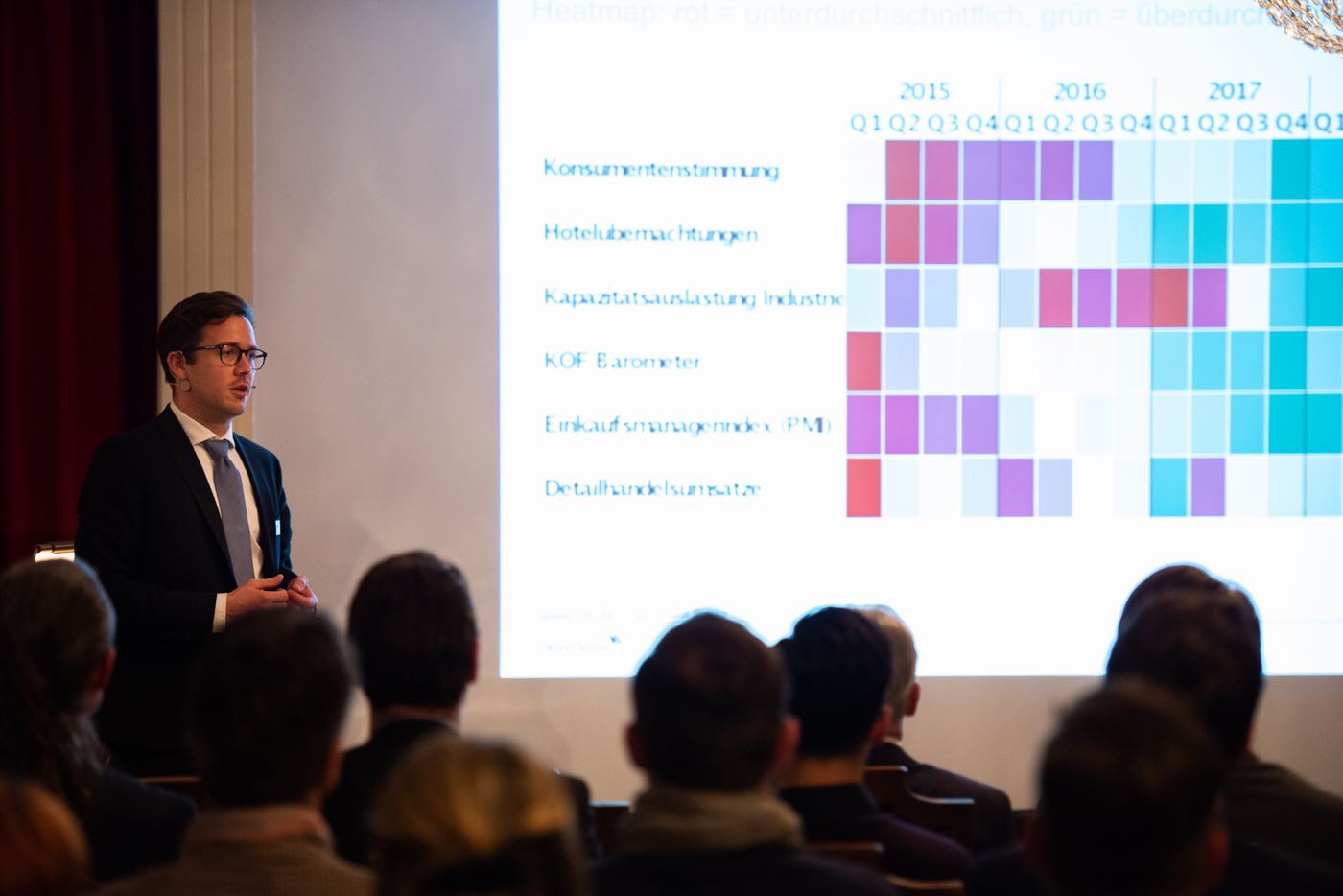 Sascha Jucker, Ökonom der Credit Suisse AG präsentierte die Detailhandelsstudie 2018. Der Detailhandel konnte 2018 seine Umsätze erneut steigern. Trotz positiven Aussichten befindet sich die Branche weiterhin im Umbruch, was unter anderem auf die stärkere Präsenz von ausländischen Onlinehändlern zurückgeführt werden kann. Die Branche sieht sich aber bereits seit Jahrzenten mit internationaler Konkurrenz konfrontiert. In den 90ern kamen z.B. viele internationale Modehäuser in die Schweiz. Und zwischen 2010 und 2015 lockte der billige Euro vermehrt Konsumenten ins Ausland. Trotz diversen Umbruchsphasen und der digitalen Transformation kann sich der Schweizer Detailhandel behaupten. Und 9 von 10 Franken werden heute weiterhin im Laden ausgegeben.