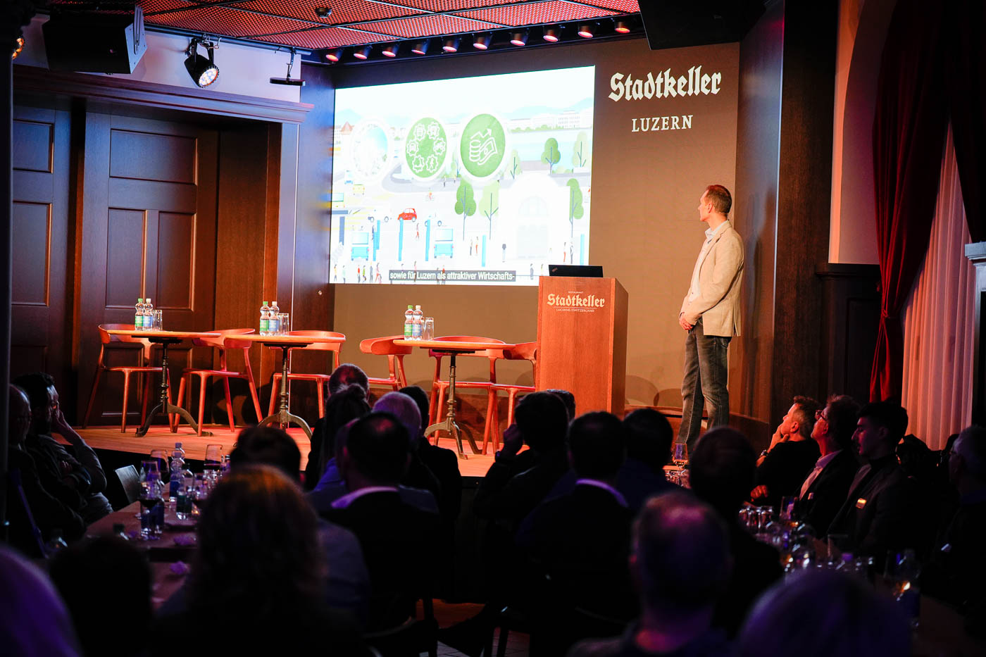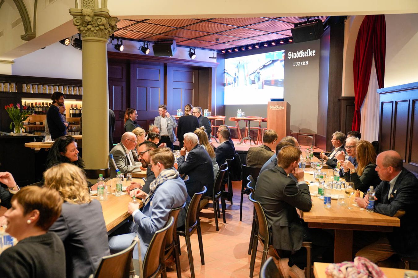 Zum Abschluss konnten die Teilnehmerinnen und Teilnehmer bei einem reichhaltigen Buffet des Stadtkellers ausgiebig das Netzwerk pflegen. Präsident Josef Williner bedankte sich bei allen Gästen für ihr Interesse, den Podiumsteilnehmern für Ihr Engagement, Marc Manetsch für die aktuellen Einblicke in das spannende Projekt und natürlich dem Stadtkeller Luzern für die ausgezeichnete Gastfreundschaft im neu renovierten Lokal.