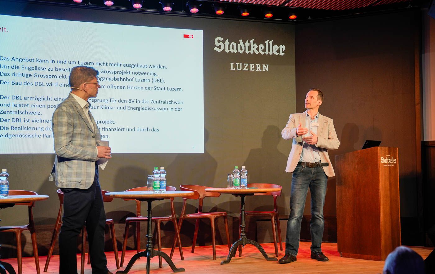 Am 15. März fand im Stadtkeller Luzern der sehr gut besuchte City Talk der City Vereinigung Luzern statt. An diesem Abend drehte sich alles um das Thema Durchgangsbahnhof Luzern - eine grosse Chance für den Marktplatz Luzern? Der in der Projektierungsphase befindliche Durchgangsbahnhof (DBL) ist ein Grossprojekt der SBB, welches die Stadt Luzern und auch die ganze Region in den nächsten 20 Jahre beschäftigen wird.