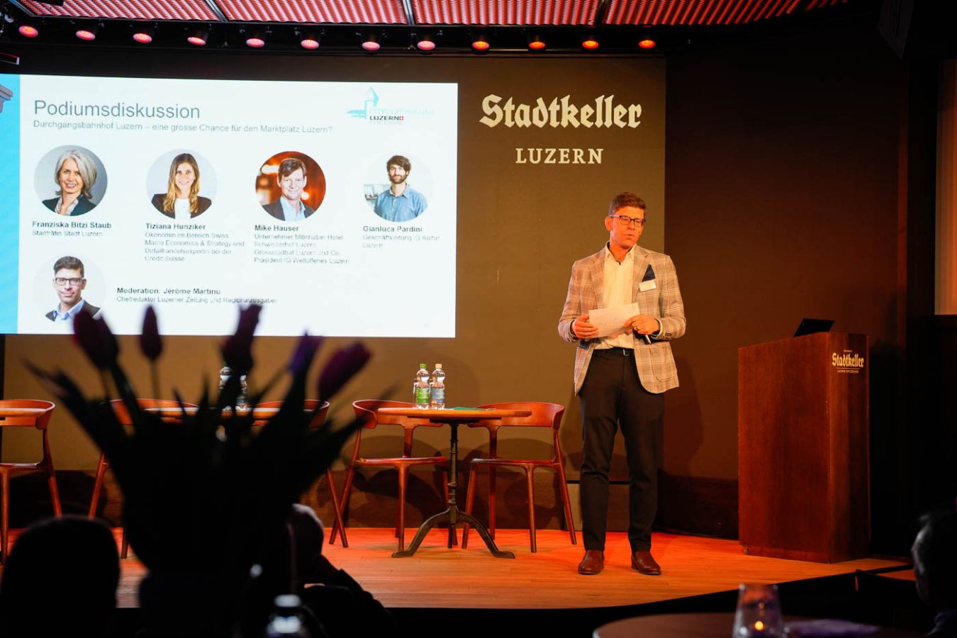 In der anschliessenden Podiumsrunde diskutierten Vertreterinnen und Vertreter aus Wirtschaft, Politik, Tourismus und Kultur über die Auswirkungen und die Chancen dieses Grossprojektes auf den Marktplatz Luzern und die ganze Stadt.