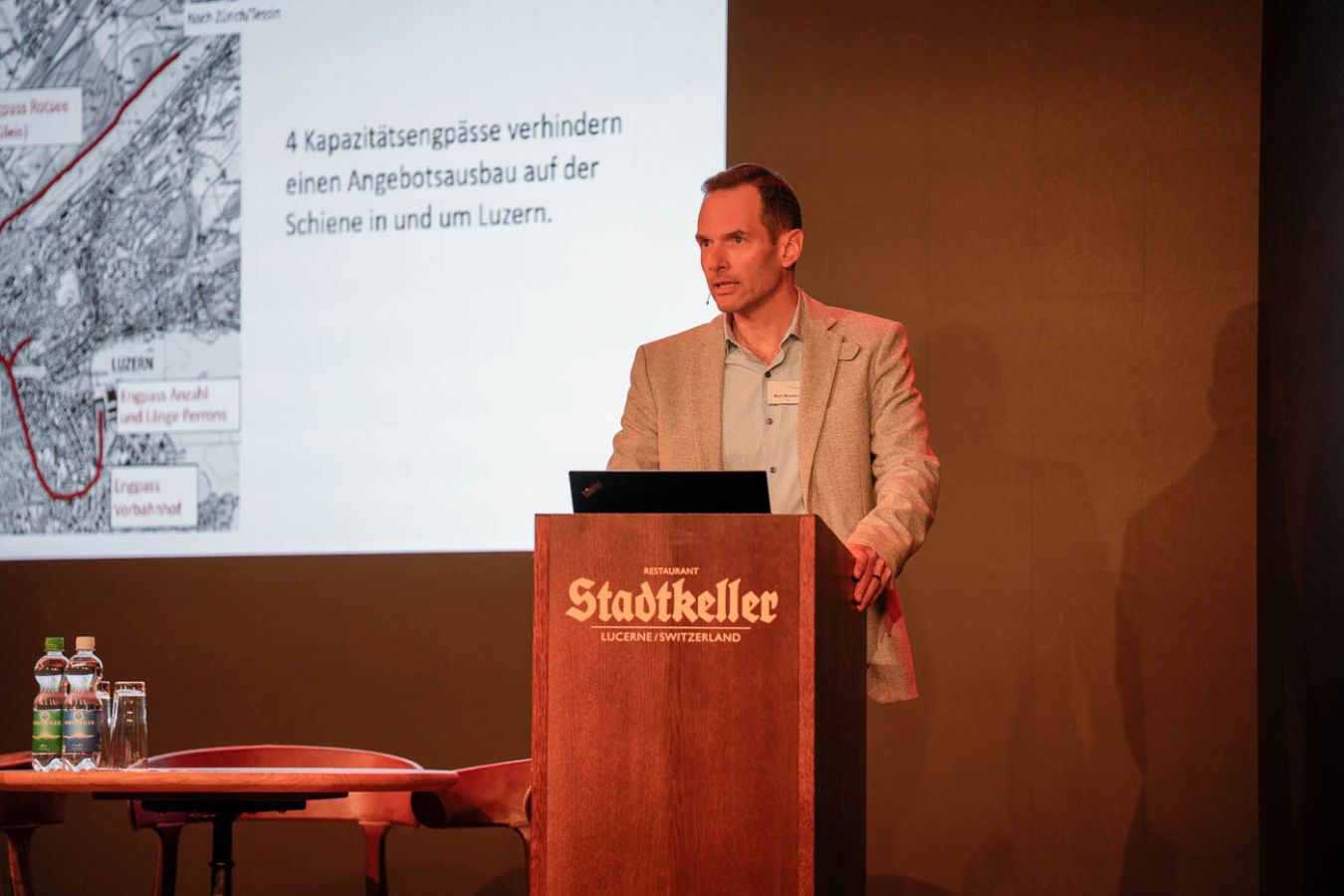 Zum Auftakt referierte Marc Manetsch, stellvertretender Projektleiter Durchgangsbahnhof Luzern, über das Jahrhundertprojekt. Strategische Entscheidungen, Linienführung, die Notwendigkeit eines Durchgangsbahnhofes sowie die Finanzierung und der grobe Zeitplan standen dabei im Vordergrund.
